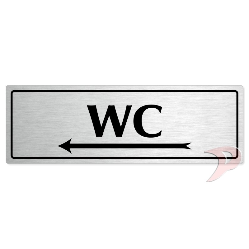 WC vlevo, 200x66mm, stříbrná popiska s rámečkem