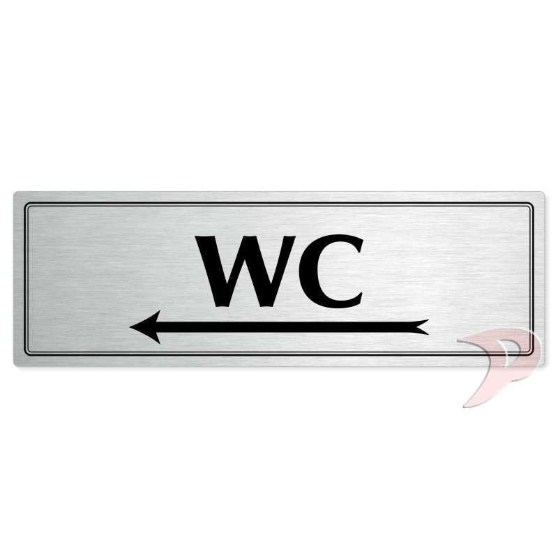 WC vlevo, 240x79mm, stříbrná popiska s dvojtým rámečkem