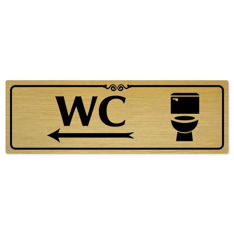 WC vlevo, 240x79mm, zlatá popiska s ozdobou uprostřed