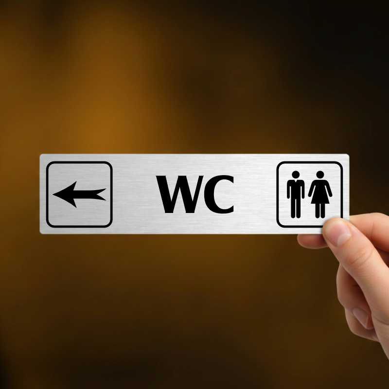 WC vlevo, stříbrná cedulka, 180x45mm120 Kč/ ks99 Kč bez DPH