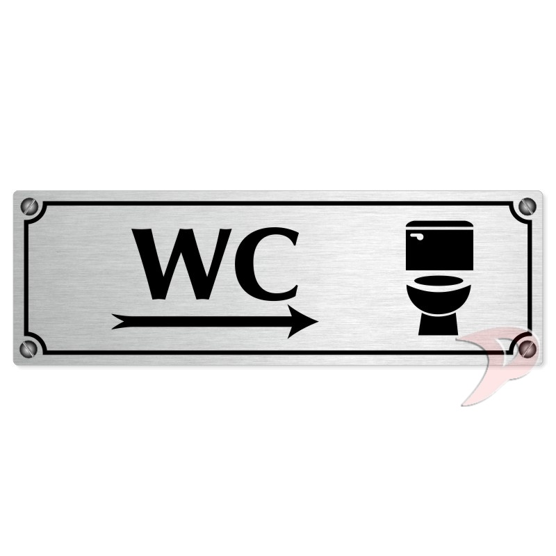 WC vpravo, 200x66mm, stříbrná popiska s imitacemi šroubků