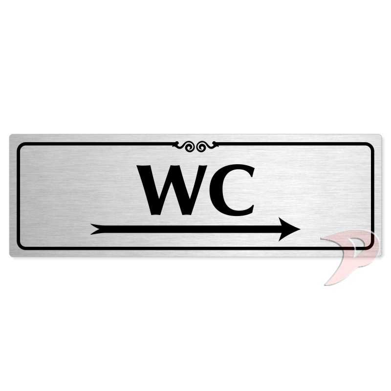 WC vpravo, 200x66mm, stříbrná popiska s ozdobou uprostřed