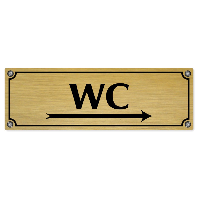 WC vpravo, 200x66mm, zlatá popiska s imitacemi šroubků