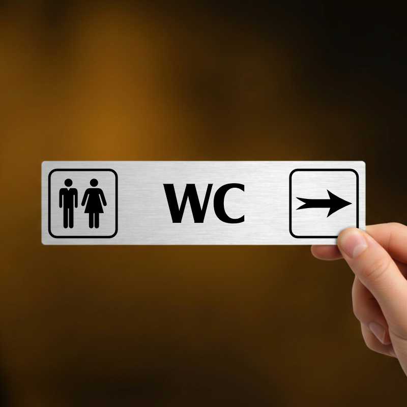 WC vpravo, stříbrná cedulka, 180x45mm120 Kč/ ks99 Kč bez DPH