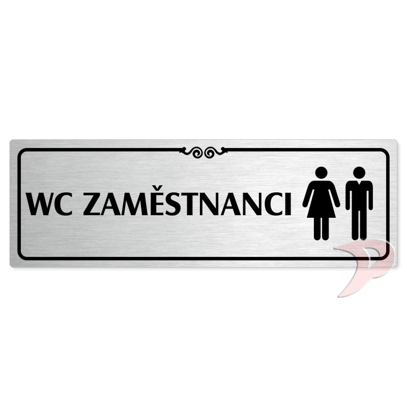 WC zaměstnanci společné, 240x79mm, stříbrná popiska s ozdobou uprostřed