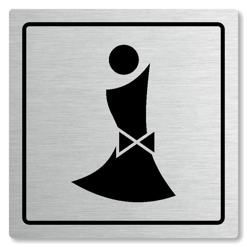 Cedulka na dveře “WC ženy“ Vyrobeno z broušeného lakovaného hliníku o síle 0,6 mm Rozměr je 80x80mm, 100x100mm, 118x118mm a 148x148mm Povrch je pololesklý  Obrázek či text je tepelně-chemicky natištěn do materiálu, a nelze ho odstranit. Cedulka je z výroby podlepena oboustrannou  páskou pro sna... celý popis