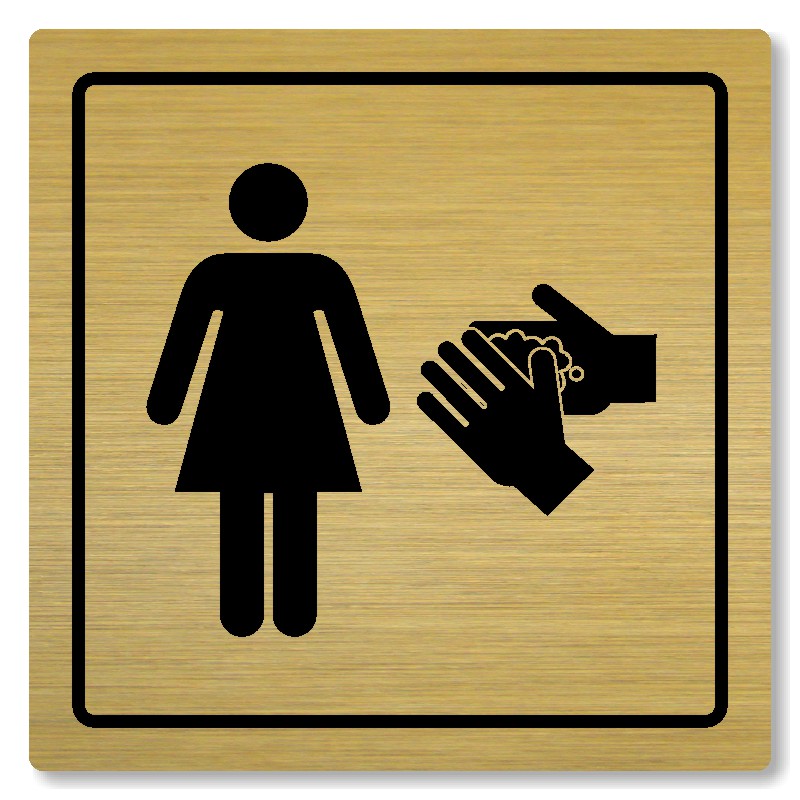 Cedulka na dveře “WC ženy“ Vyrobeno z broušeného lakovaného hliníku o síle 0,6 mm Rozměr je 80x80mm, 100x100mm, 118x118mm a 148x148mm Povrch je pololesklý  Obrázek či text je tepelně-chemicky natištěn do materiálu, a nelze ho odstranit. Cedulka je z výroby podlepena oboustrannou  páskou pro sna... celý popis