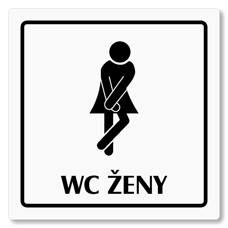 Cedulka na dveře “WC ženy“ Vyrobeno z broušeného lakovaného hliníku o síle 0,6 mm Rozměr je 80x80mm, 100x100mm, 118x118mm a 148x148mm Povrch je pololesklý  Obrázek či text je tepelně-chemicky natištěn do materiálu, a nelze ho odstranit. Cedulka je z výroby podlepena oboustrannou  páskou pro sna... celý popis