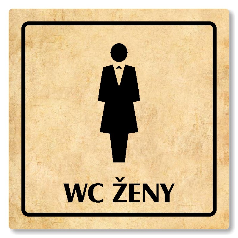 Cedulka na dveře “WC ženy“ Vyrobeno z broušeného lakovaného hliníku o síle 0,6 mm Rozměr je 80x80mm, 100x100mm, 118x118mm a 148x148mm Povrch je pololesklý  Obrázek či text je tepelně-chemicky natištěn do materiálu, a nelze ho odstranit. Cedulka je z výroby podlepena oboustrannou  páskou pro sna... celý popis