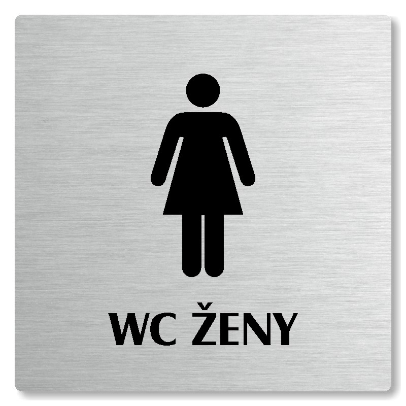 Cedulka na dveře “WC ženy“ Vyrobeno z broušeného lakovaného hliníku o síle 0,6 mm Rozměr je 80x80mm, 100x100mm, 118x118mm a 148x148mm Povrch je pololesklý  Obrázek či text je tepelně-chemicky natištěn do materiálu, a nelze ho odstranit. Cedulka je z výroby podlepena oboustrannou  páskou pro sna... celý popis