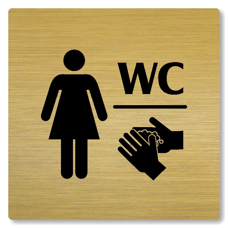 Cedulka na dveře “WC ženy“ Vyrobeno z broušeného lakovaného hliníku o síle 0,6 mm Rozměr je 80x80mm, 100x100mm, 118x118mm a 148x148mm Povrch je pololesklý  Obrázek či text je tepelně-chemicky natištěn do materiálu, a nelze ho odstranit. Cedulka je z výroby podlepena oboustrannou  páskou pro sna... celý popis