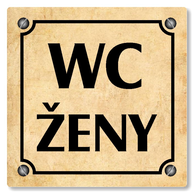 Cedulka na dveře “WC ženy“ Vyrobeno z broušeného lakovaného hliníku o síle 0,6 mm Rozměr je 80x80mm, 100x100mm, 118x118mm a 148x148mm Povrch je pololesklý  Obrázek či text je tepelně-chemicky natištěn do materiálu, a nelze ho odstranit. Cedulka je z výroby podlepena oboustrannou  páskou pro sna... celý popis