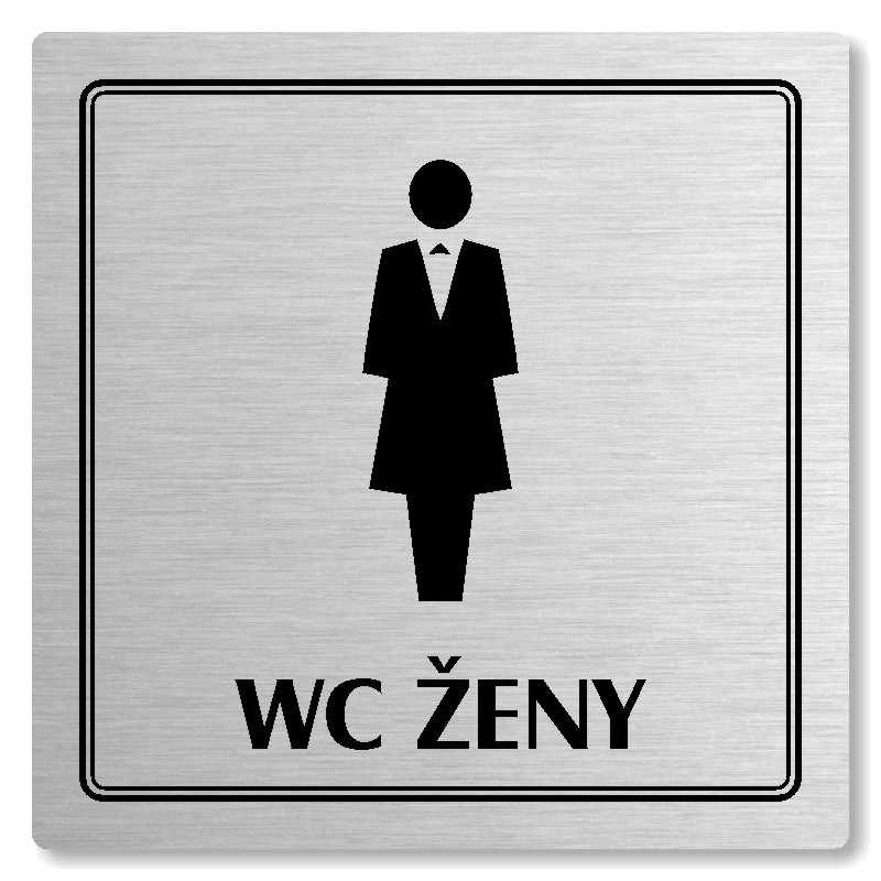 Cedulka na dveře “WC ženy“ Vyrobeno z broušeného lakovaného hliníku o síle 0,6 mm Rozměr je 80x80mm, 100x100mm, 118x118mm a 148x148mm Povrch je pololesklý  Obrázek či text je tepelně-chemicky natištěn do materiálu, a nelze ho odstranit. Cedulka je z výroby podlepena oboustrannou  páskou pro sna... celý popis