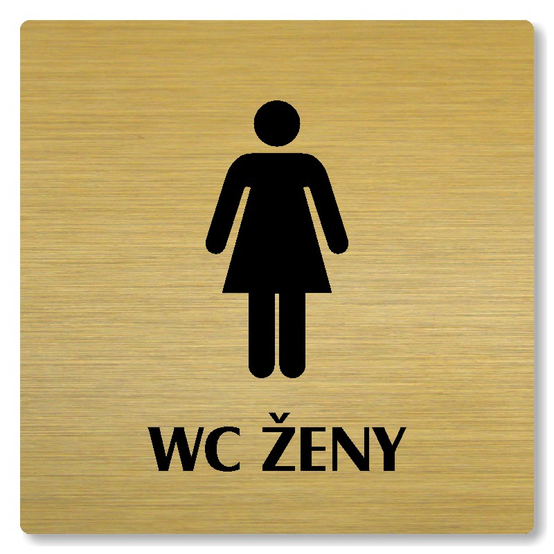 Cedulka na dveře “WC ženy“ Vyrobeno z broušeného lakovaného hliníku o síle 0,6 mm Rozměr je 80x80mm, 100x100mm, 118x118mm a 148x148mm Povrch je pololesklý  Obrázek či text je tepelně-chemicky natištěn do materiálu, a nelze ho odstranit. Cedulka je z výroby podlepena oboustrannou  páskou pro sna... celý popis