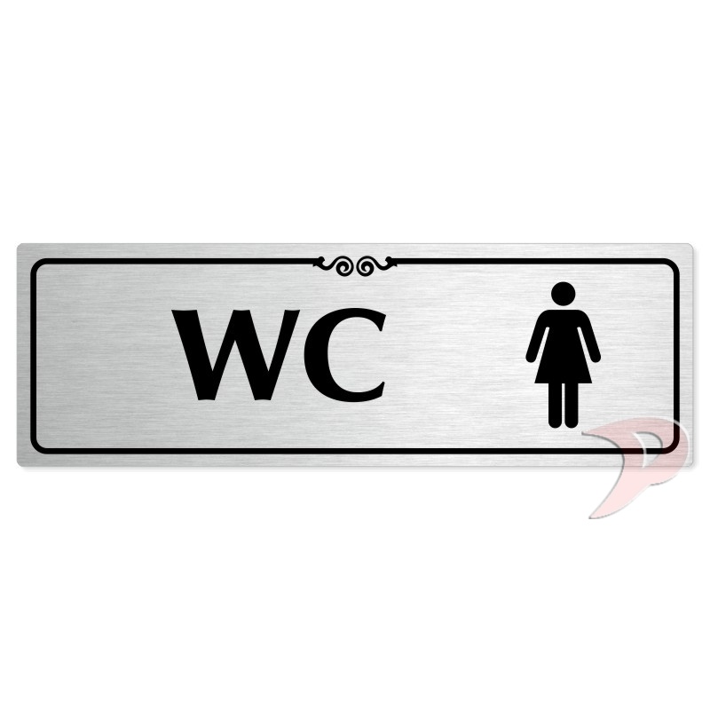 WC ženy, 200x66mm, stříbrná popiska s ozdobou uprostřed