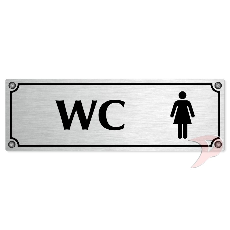WC ženy, 240x79mm, stříbrná popiska s imitacemi šroubků