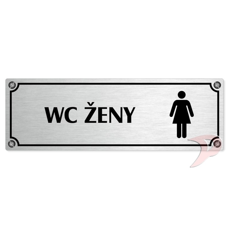 WC ženy, 240x79mm, stříbrná popiska s imitacemi šroubků