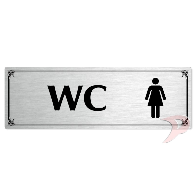 WC ženy, 240x79mm, stříbrná popiska s okrasným rámečkem
