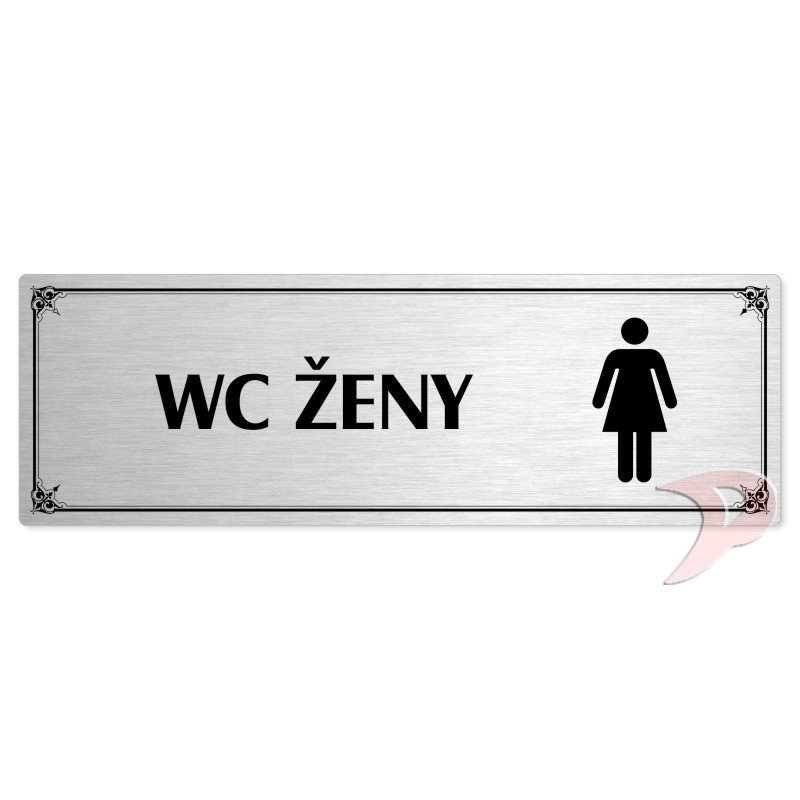 WC ženy, 240x79mm, stříbrná popiska s okrasným rámečkem