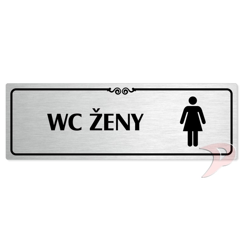 WC ženy, 240x79mm, stříbrná popiska s ozdobou uprostřed