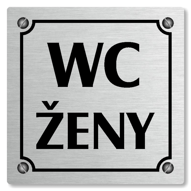 Cedulka na dveře “WC ženy“ Vyrobeno z broušeného lakovaného hliníku o síle 0,6 mm Rozměr je 80x80mm, 100x100mm, 118x118mm a 148x148mm Povrch je pololesklý  Obrázek či text je tepelně-chemicky natištěn do materiálu, a nelze ho odstranit. Cedulka je z výroby podlepena oboustrannou  páskou pro sna... celý popis