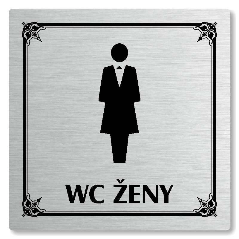 Cedulka na dveře “WC ženy“ Vyrobeno z broušeného lakovaného hliníku o síle 0,6 mm Rozměr je 80x80mm, 100x100mm, 118x118mm a 148x148mm Povrch je pololesklý  Obrázek či text je tepelně-chemicky natištěn do materiálu, a nelze ho odstranit. Cedulka je z výroby podlepena oboustrannou  páskou pro sna... celý popis