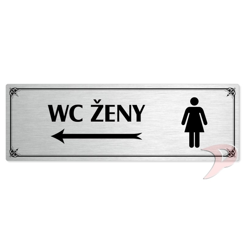 WC ženy vlevo, 200x66mm, stříbrná popiska s okrasným rámečkem