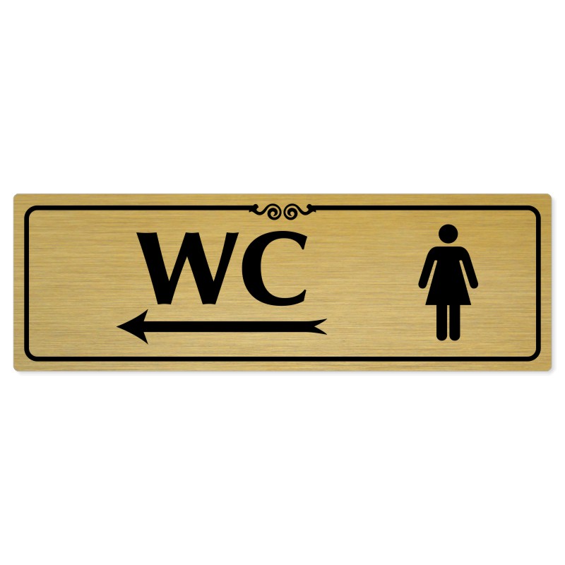 WC ženy vlevo, 200x66mm, zlatá popiska s ozdobou uprostřed