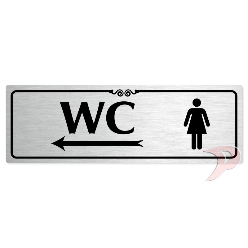 WC ženy vlevo, 240x79mm, stříbrná popiska s ozdobou uprostřed