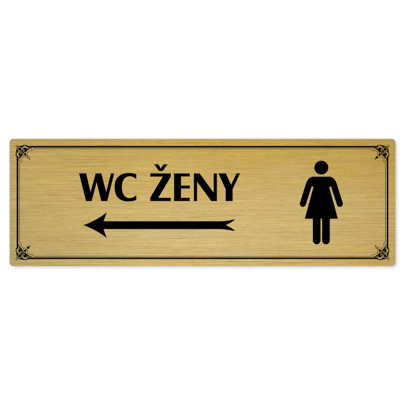 WC ženy vlevo, 240x79mm, zlatá popiska s okrasným rámečkem