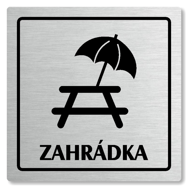 Cedulka na dveře “Zahrádka“ Vyrobeno z broušeného lakovaného hliníku o síle 0,6 mm Rozměr je 80x80mm, 100x100mm, 118x118mm a 148x148mm Povrch je pololesklý  Obrázek či text je tepelně-chemicky natištěn do materiálu, a nelze ho odstranit. Cedulka je z výroby podlepena oboustrannou  páskou pro sn... celý popis