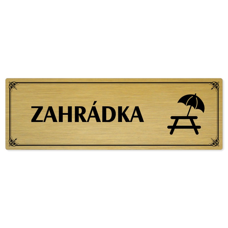 Zahrádka, 240x79mm, zlatá popiska s okrasným rámečkem