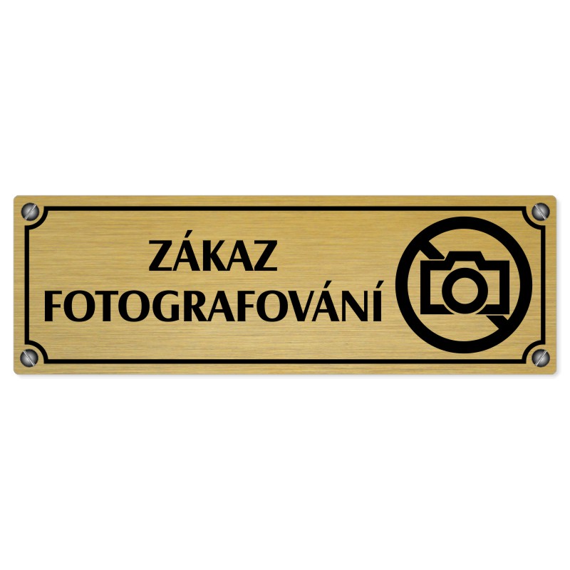 Zákaz fotografování, 200x66mm, zlatá popiska s imitacemi šroubků