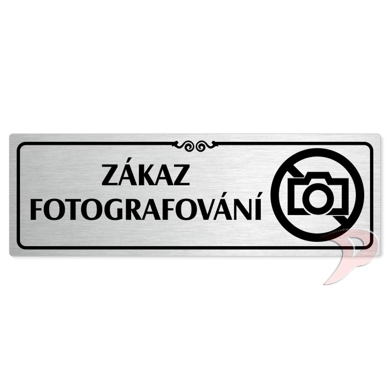 Zákaz fotografování, 240x79mm, stříbrná popiska s ozdobou uprostřed
