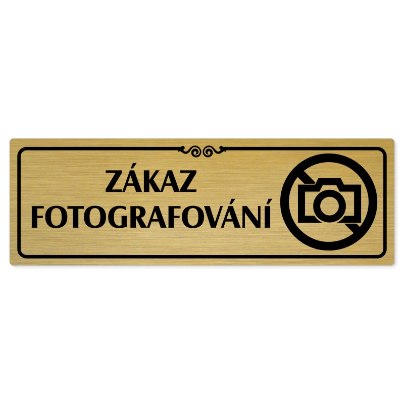 Zákaz fotografování, 240x79mm, zlatá popiska s ozdobou uprostřed