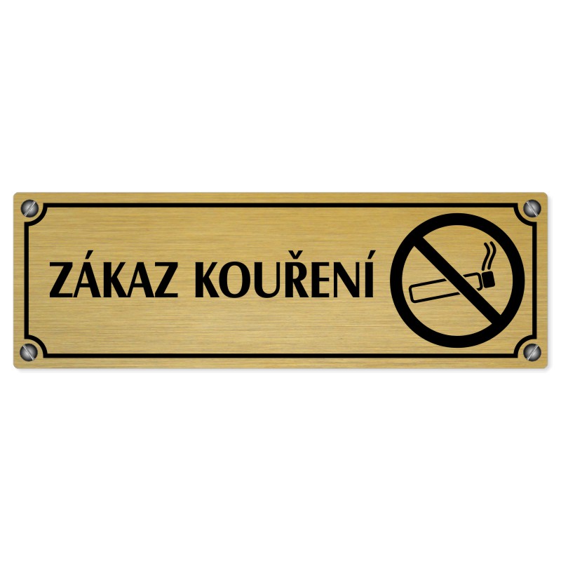 Zákaz kouření, 200x66mm, zlatá popiska s imitacemi šroubků238 Kč197 Kč bez DPH