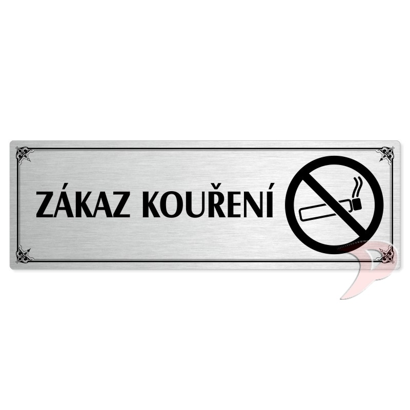 Zákaz kouření, 240x79mm, stříbrná popiska s okrasným rámečkem