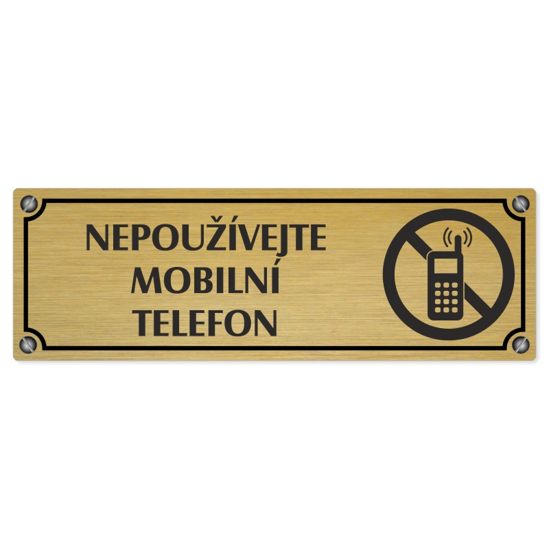 Zákaz mobilů, 200x66mm, zlatá popiska s imitacemi šroubků