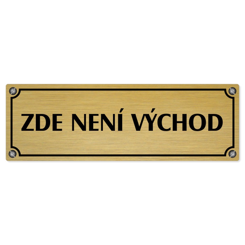 Zde není východ, 240x79mm, zlatá popiska s imitacemi šroubků