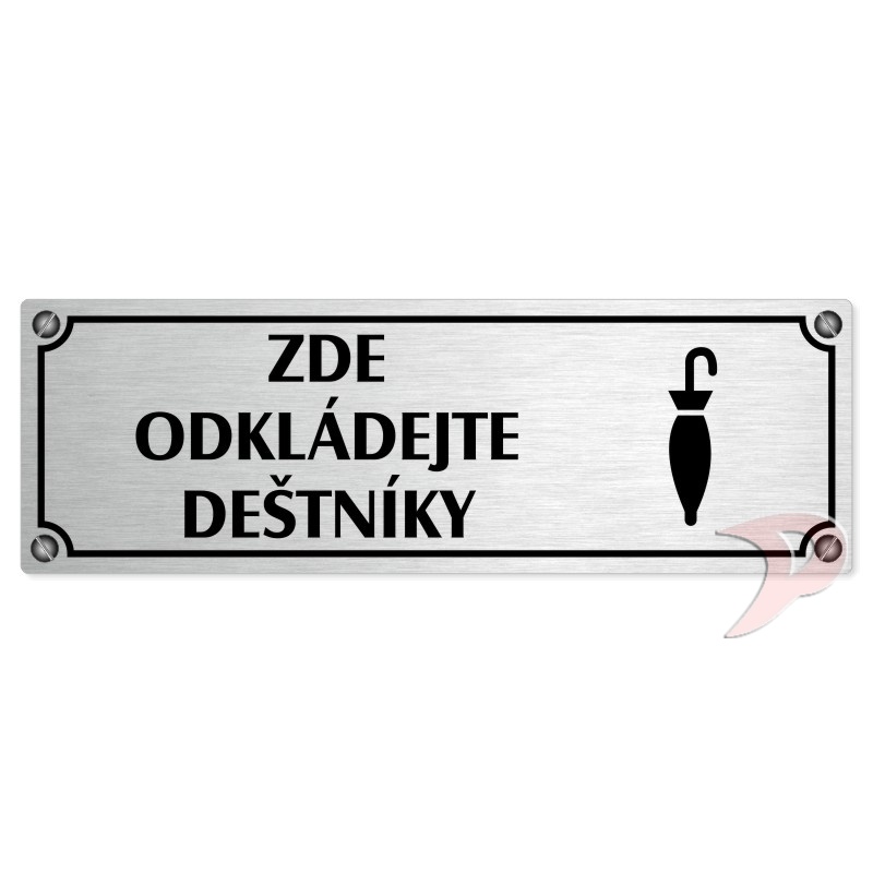 Zde odkládejte deštníky, 240x79mm, stříbrná popiska s imitacemi šroubků299 Kč247 Kč bez DPH