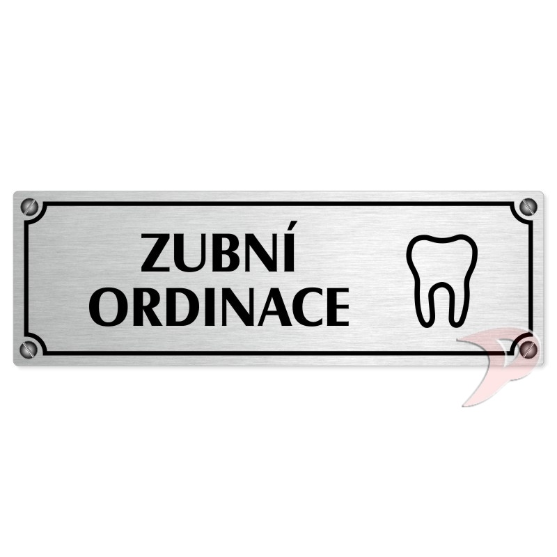 Zubní ordinace, 240x79mm, stříbrná popiska s imitacemi šroubků
